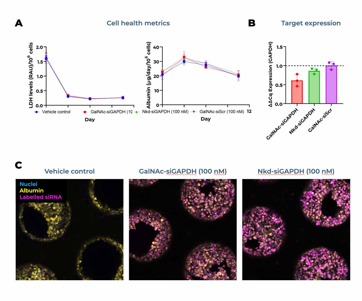 - 2 weeks of culture enables uptake, knockdown & tissue health biomarker investigation